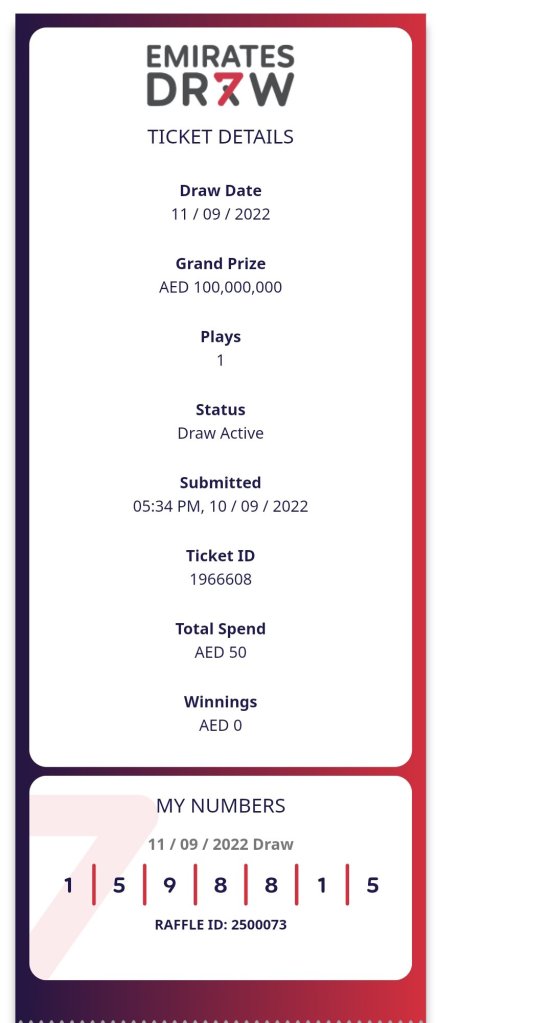 Ticket Numbers Emirates Draw Group -2 11/09 @ IST 10:30 PM