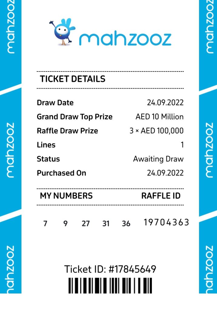 Ticket Numbers Mahzooz Group -4 24/09 @ IST 10:00 PM