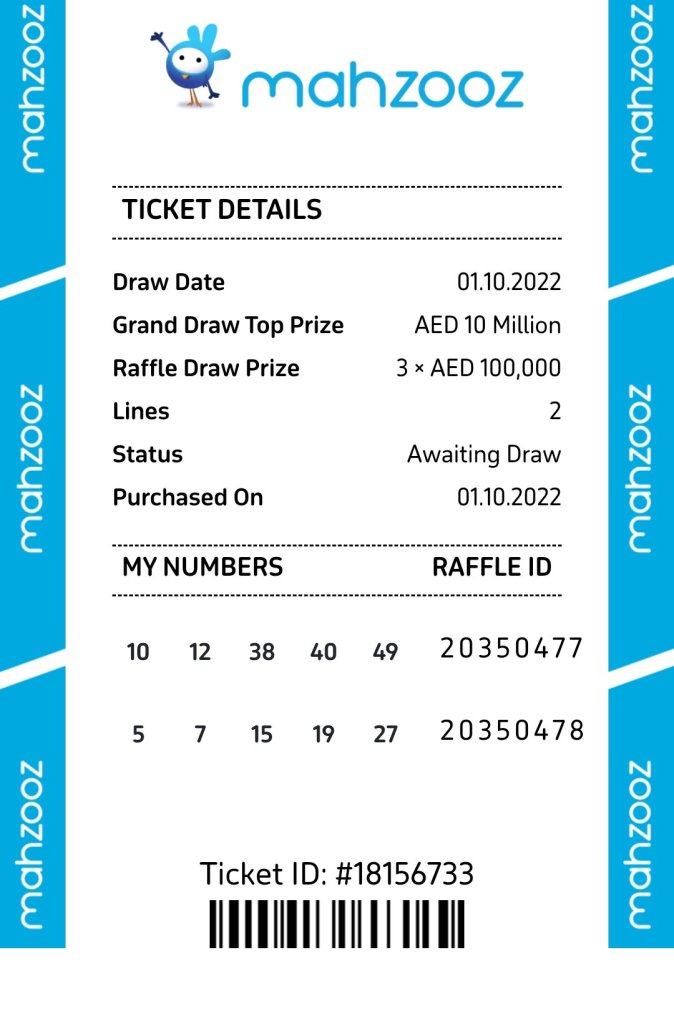 Ticket Numbers Mahzooz Group -1 01/10 @ IST 10:00 PM