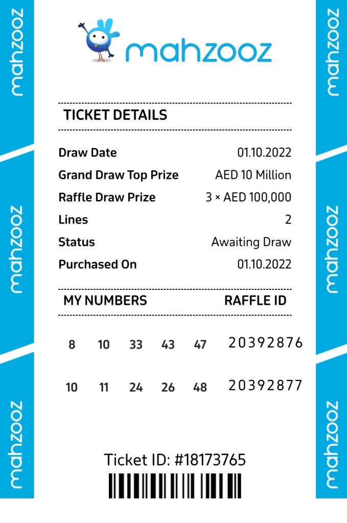 Ticket Numbers Mahzooz Group –3 01/10 @ IST 10:00 PM
