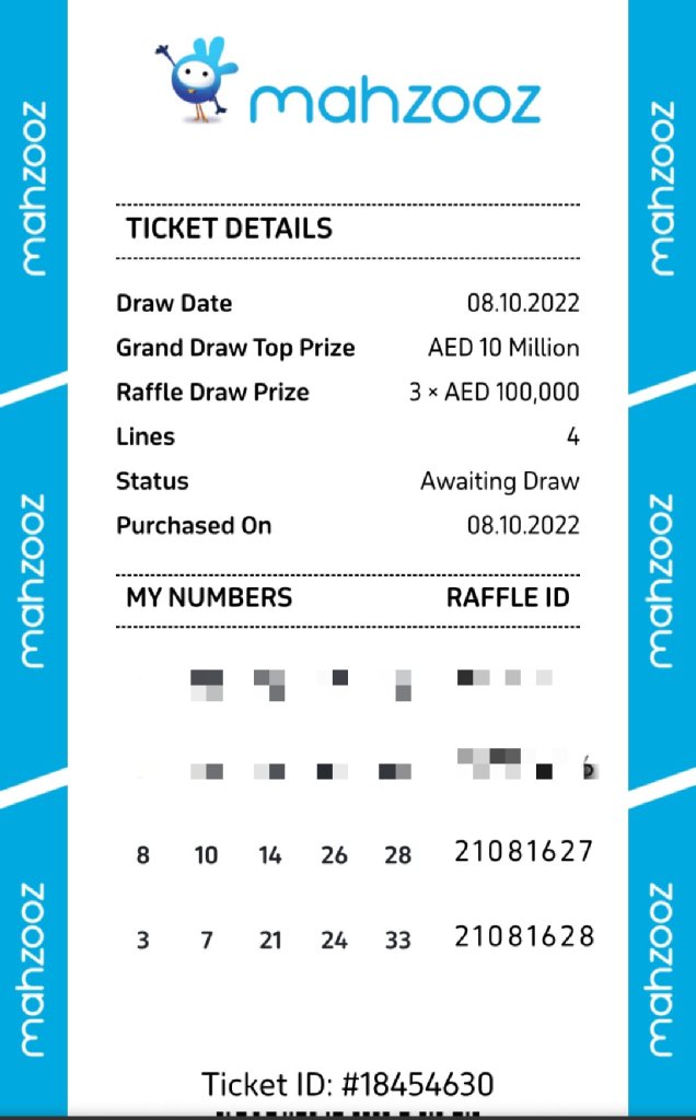 Ticket Numbers Mahzooz Group -2 08/10 @ IST 10:00 PM