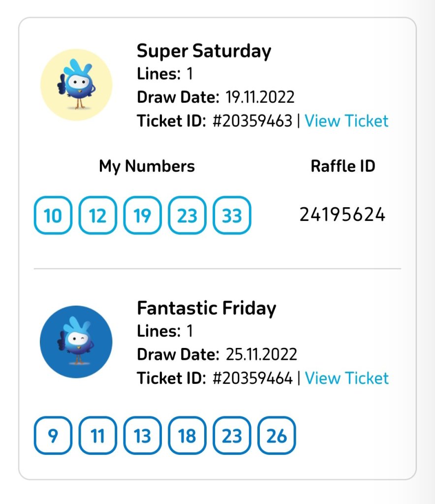 Ticket No & ID Saturday 19/11 & Friday 25/11: