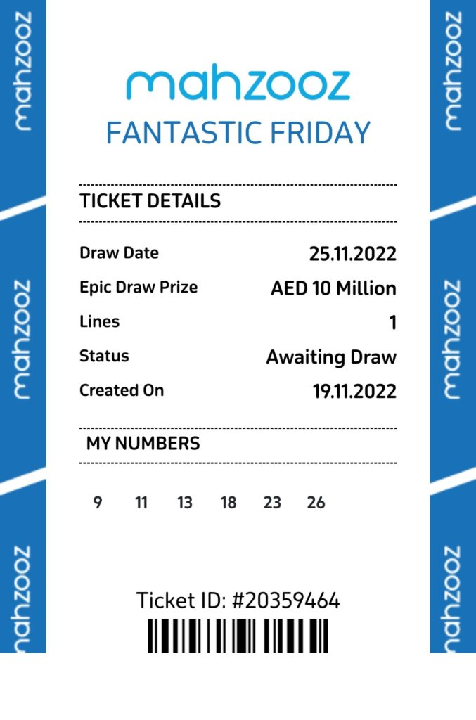 Ticket Numbers Mahzooz Group –1 19/11 @ IST 10:00 PM