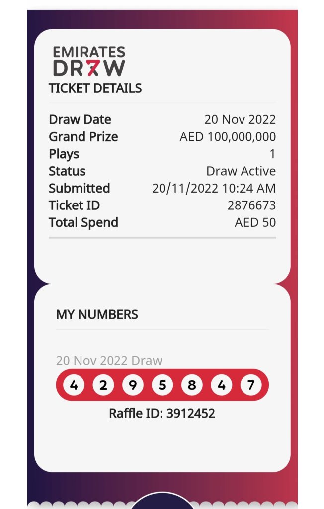 Ticket Numbers Emirates Draw Group -1 20/11 @ IST 10:00 PM