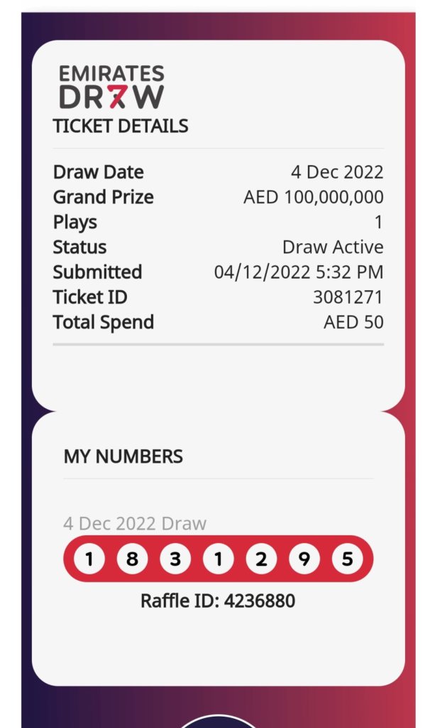 Ticket Numbers Emirates Draw Group -1 04/12 @ IST 10:00 PM