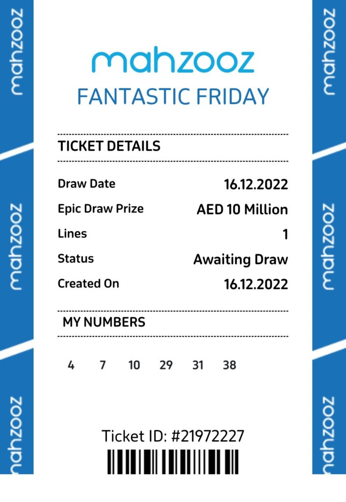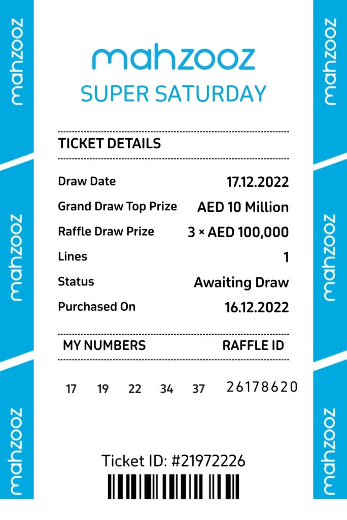 Ticket Numbers Mahzooz Group –1 17/12 @ IST 10:00 PM