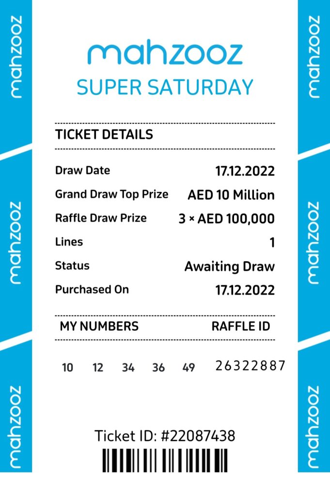 Ticket Numbers Mahzooz Group –2 17/12 @ IST 10:00 PM
