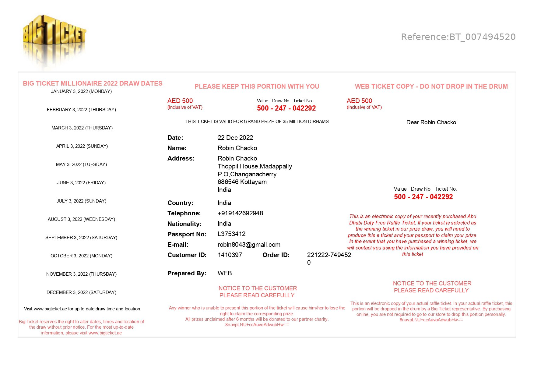 Keep Your Ticket Number & Reference ID Safe !!!