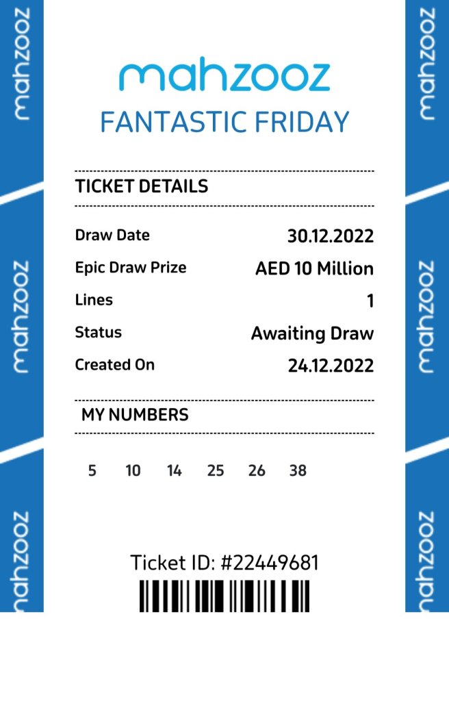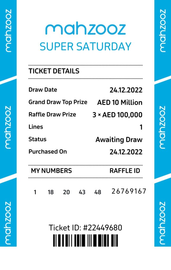 Ticket Numbers Mahzooz Group –1 24/12 @ IST 10:00 PM