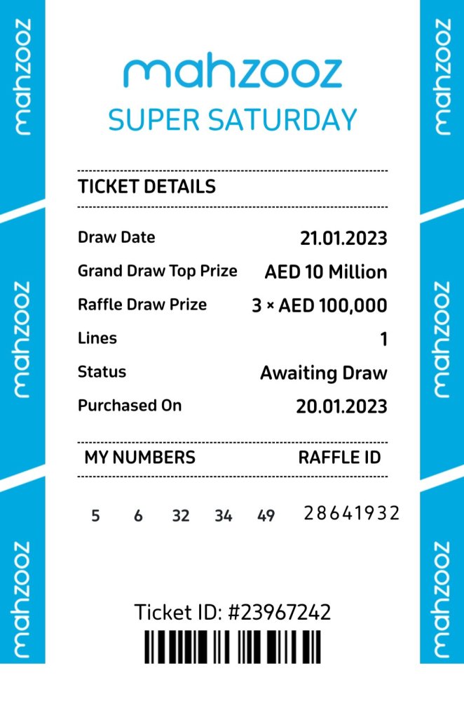 Ticket Numbers Mahzooz Group –1 21/01/23 @ IST 10:00 PM