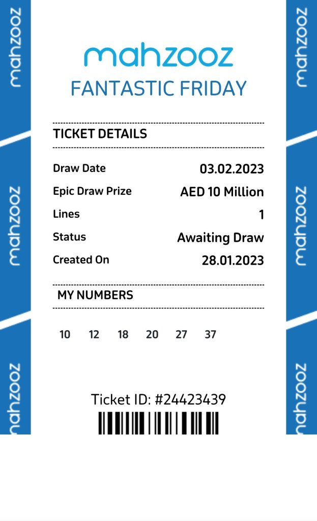Ticket Numbers Mahzooz Group –2 28/01/23 @ IST 10:00 PM