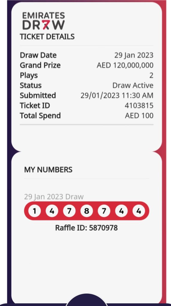 Ticket Numbers Emirates Draw Group -1 29/01 @ IST 10:00 PM