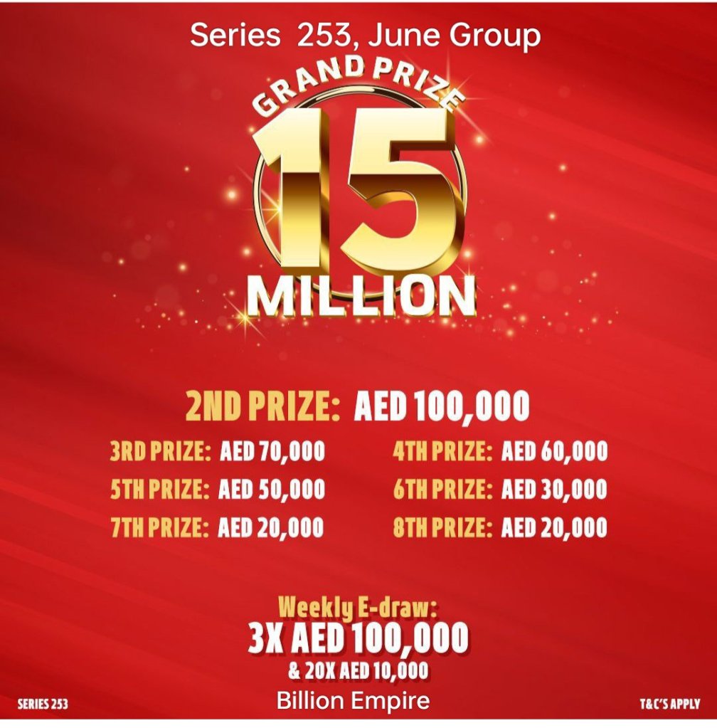 Prize Divide Equally to all members in the Group + Admin after all expenses and Taxes * We couldn’t divide the draw SHARES if it’s lower than AED 10.