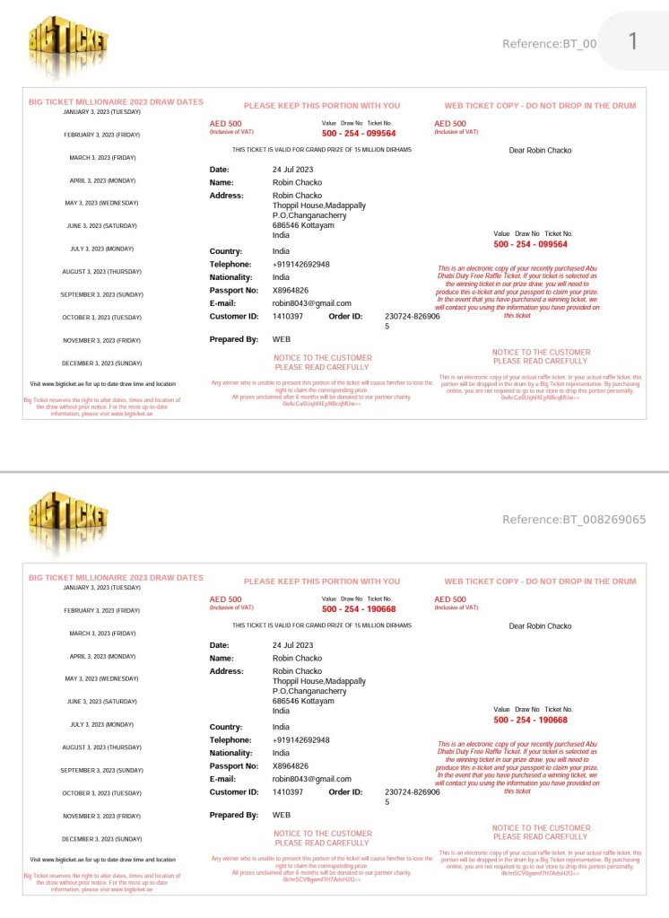 Ticket Numbers BIG TICKET Series 254, JULY Group-1 03/08/2023 @ IST 09:00 PM