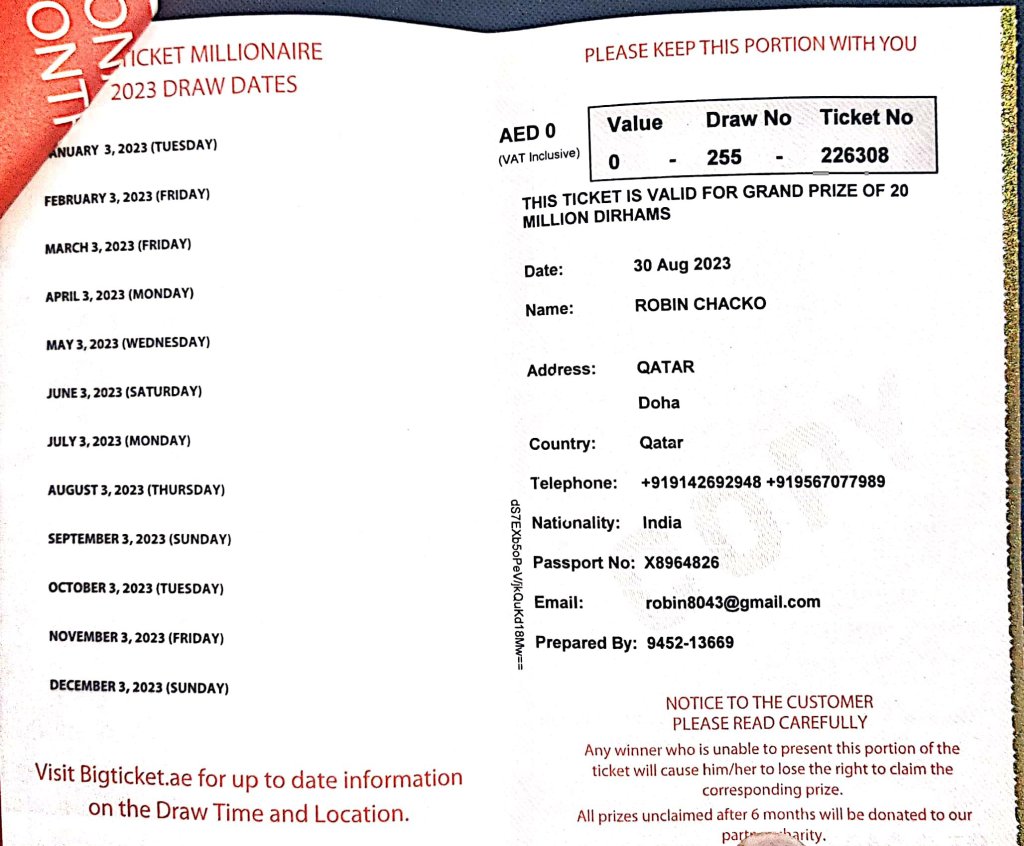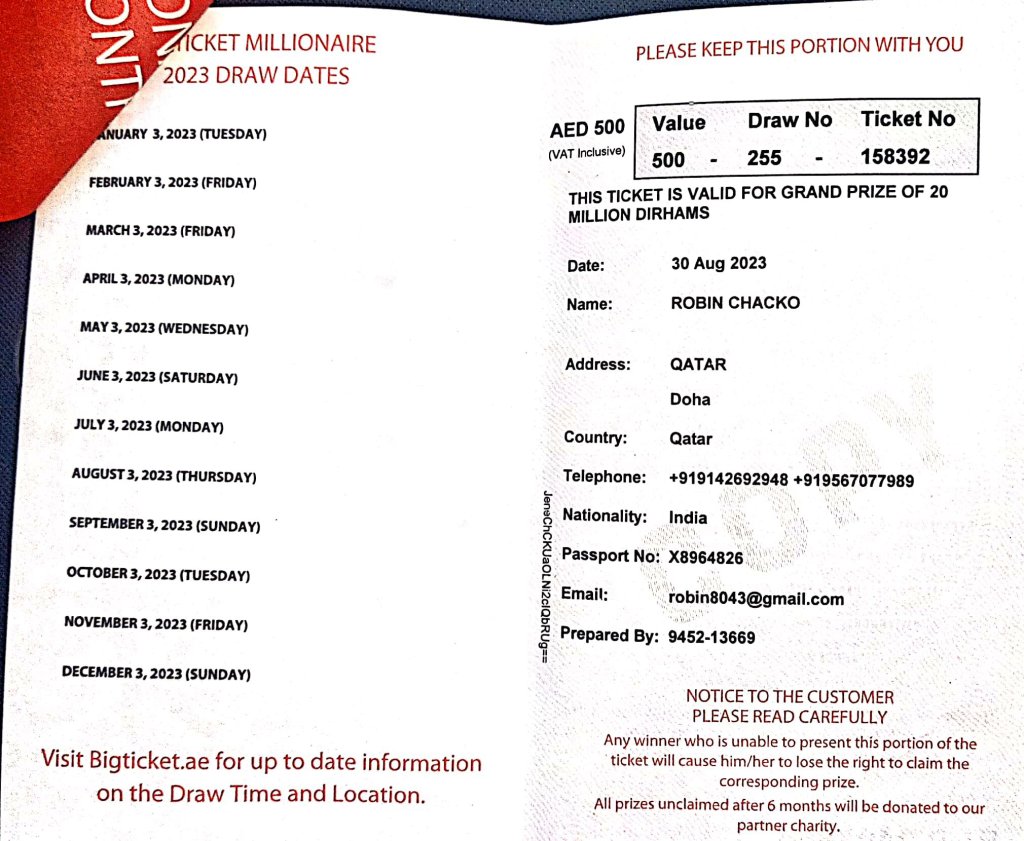 Ticket Numbers BIG TICKET Series 255, AUGUST Group-1 03/09/2023 @ IST 09:00 PM