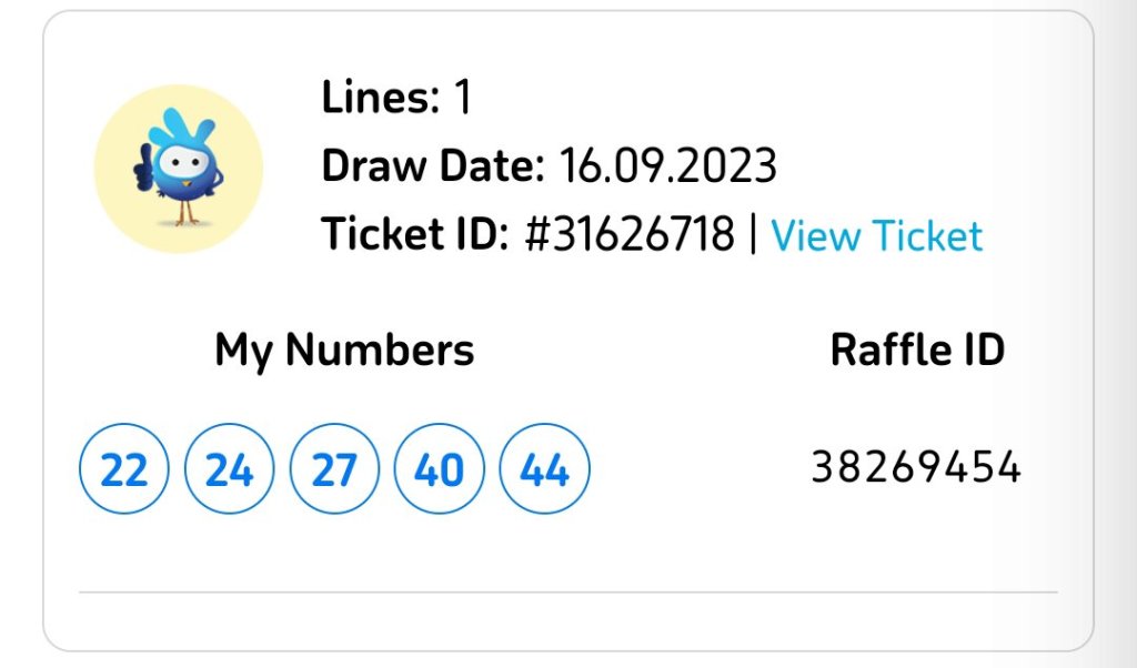 Saturday Draw Ticket