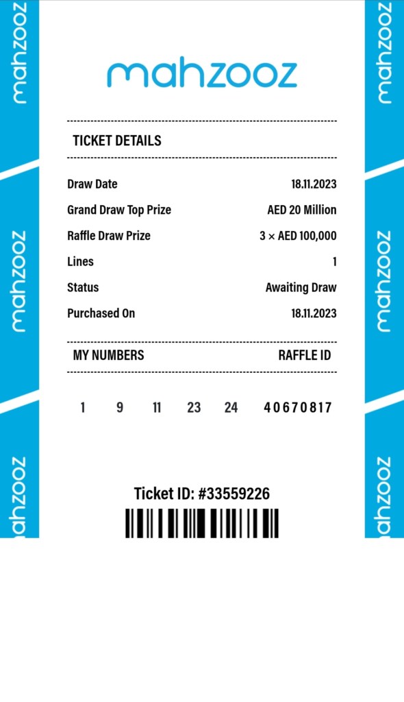 Saturday Draw Ticket