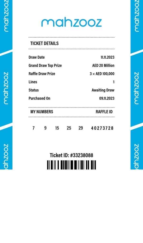 Mahzooz Saturday 11/11/23 Group 1- Prize Ticket (18/11/23)